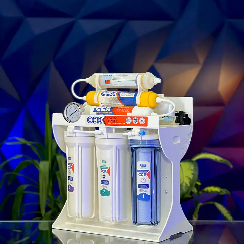 دستگاه تصفیه آب خانگی CCK، نسل جدیدی از دستگاه‌های آب شیرین‌کن خانگی است که با بهره‌گیری از فیلترهای باکیفیت در 7 مرحله، آب را برای آشامیدن کاملاً مناسب می‌سازد.