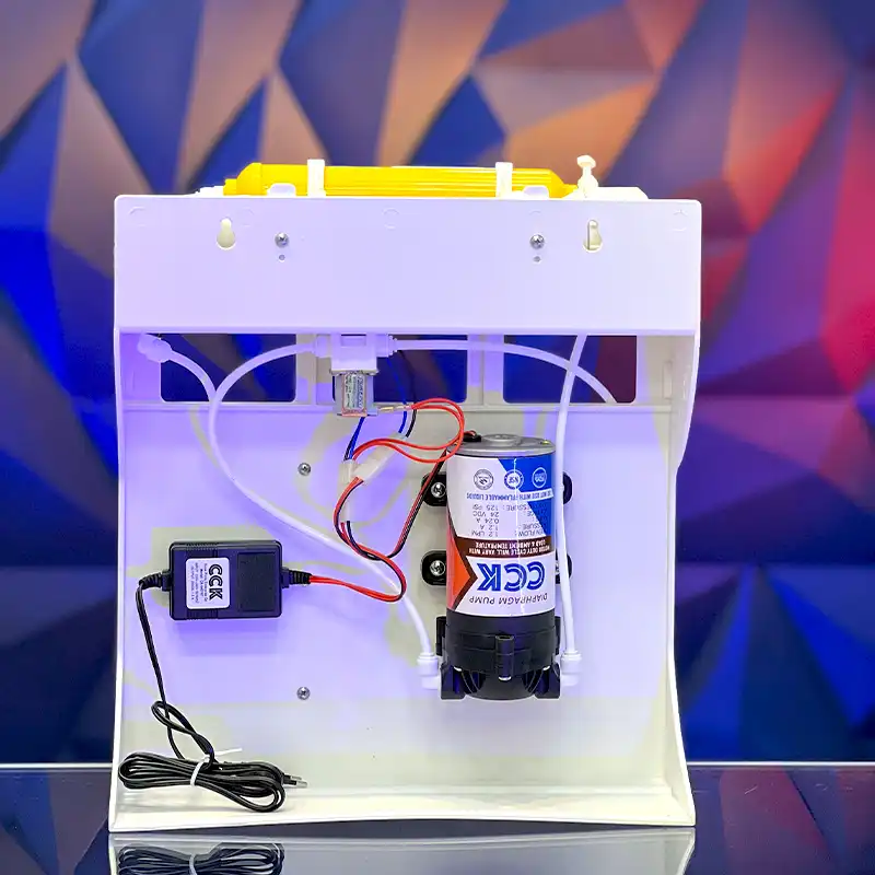 اجزای اصلی این دستگاه شامل پمپ قوی، شیر سینک، مخزن آب آنتی باکتریال و فیلتر ممبراین است.